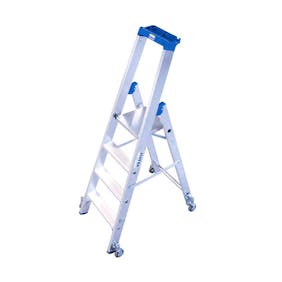 La plateforme roulante est un type d’escabeau un peu différent, car elle permet de se déplacer sans quitter la plateforme de l’escabeau. Elle dispose de roulettes autobloquantes et est particulièrement pratique pour les travaux de peinture ou de nettoyage en hauteur. Contrairement à ce que l’on pourrait croire, les plateformes roulantes sont très stables et sécurisées : un allié efficace pour les professionnels du BTP.